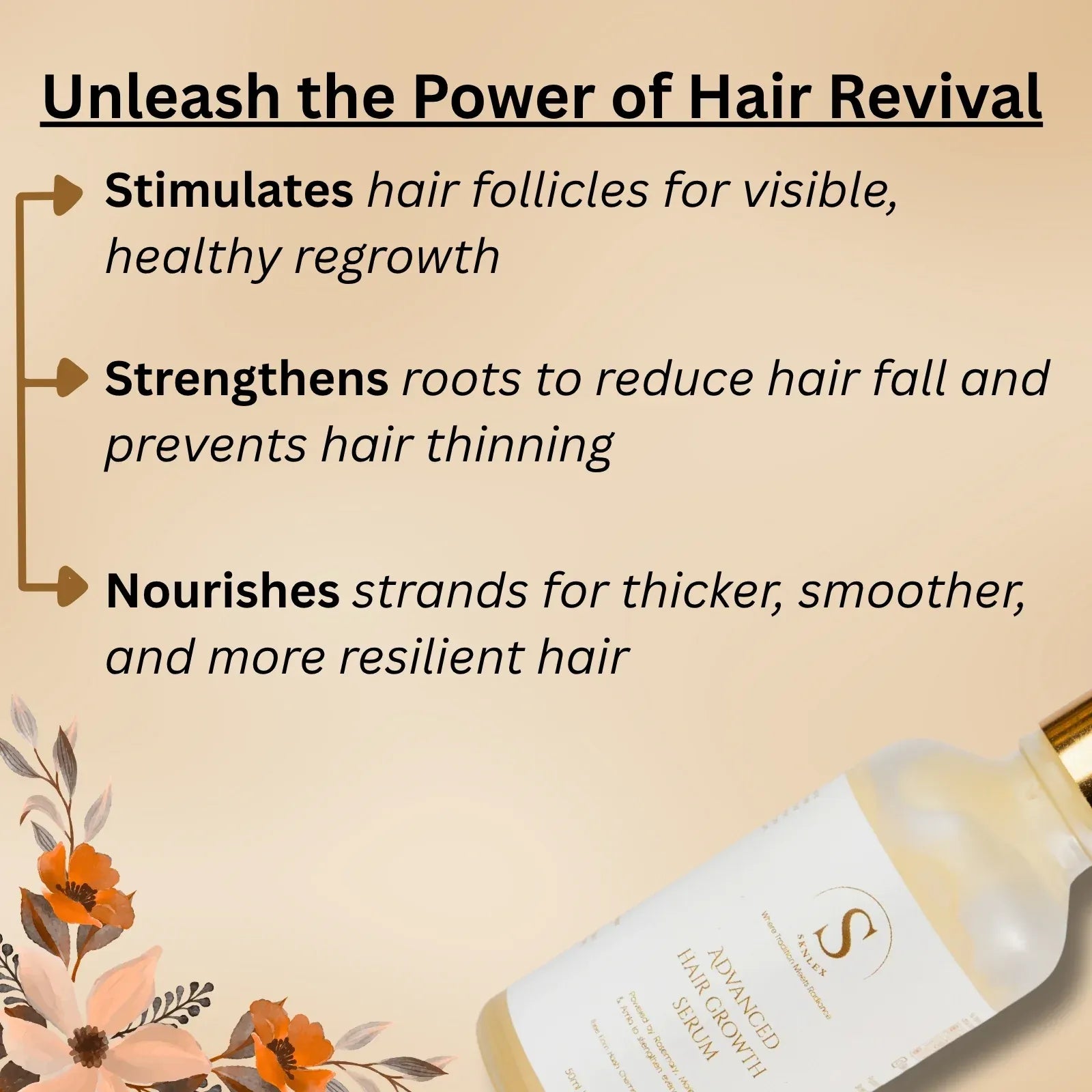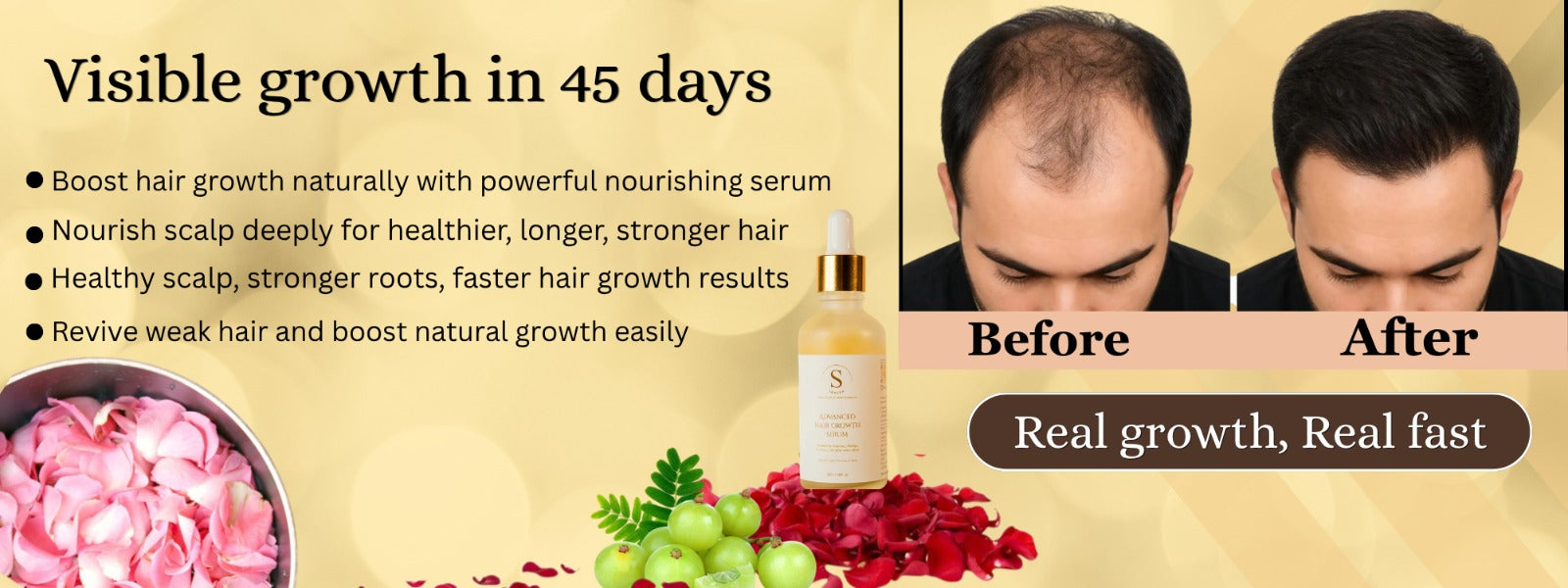 Experience the power of science-backed hair care with our Advanced Hair Growth Serum — the best hair growth serum designed for both men and women. This potent blend of active botanicals, peptides, and nourishing vitamins is formulated to stimulate hair follicles, strengthen roots, and promote visibly thicker, fuller hair. Whether you're looking for a hair growth serum for men and women or simply the best hair serum for hair growth, this lightweight and non-greasy formula absorbs quickly to improve scalp health and reduce hair fall, making it perfect for all hair types and daily use.